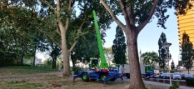 “Na +-45jaar trouwe dienst als woonplek, hangplek en schaduwdoek zijn de populieren tegenover de praktijk omgezaagd.